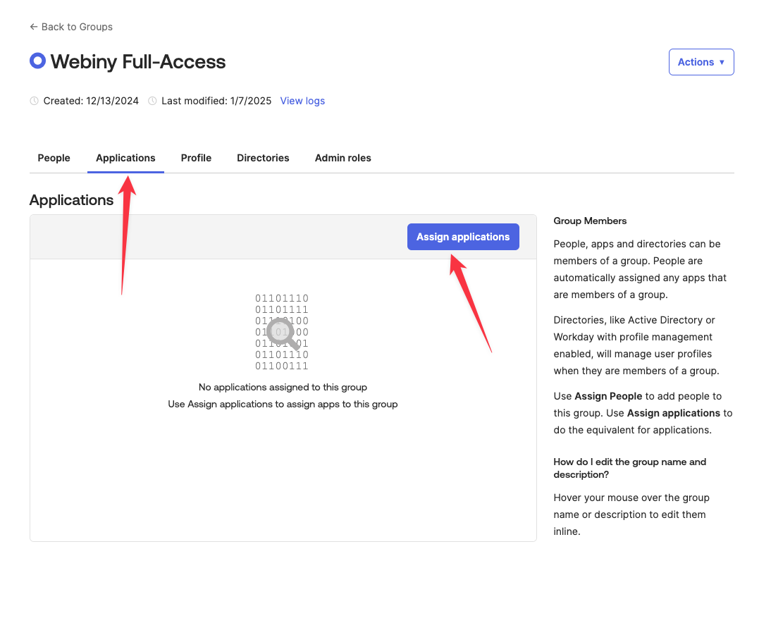 • assign Okta group(s) to the OIDC app
